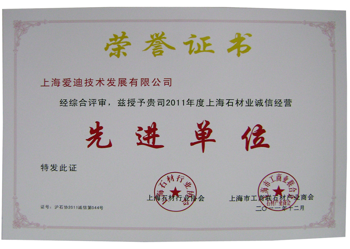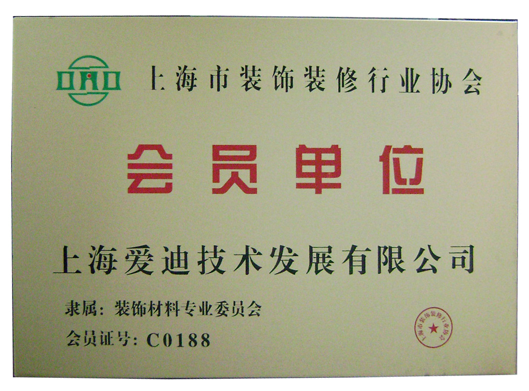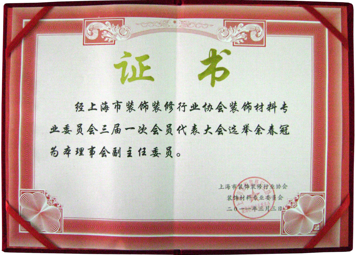 上海市裝飾裝修行業協會裝飾材料推薦證書