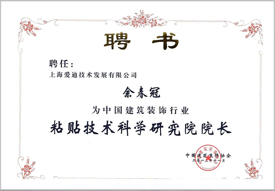余春冠—粘貼技術科學研究院院長聘書