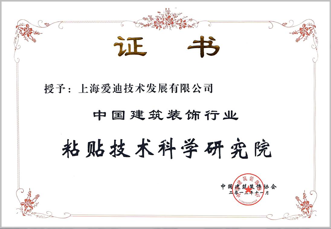 粘貼技術科學研究院證書