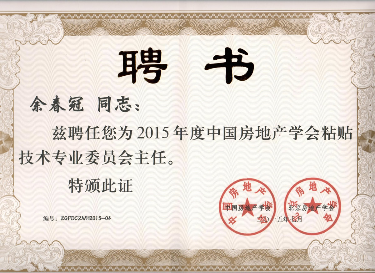 聘書—余春冠—房地產學會--粘帖技術專業委員會主任