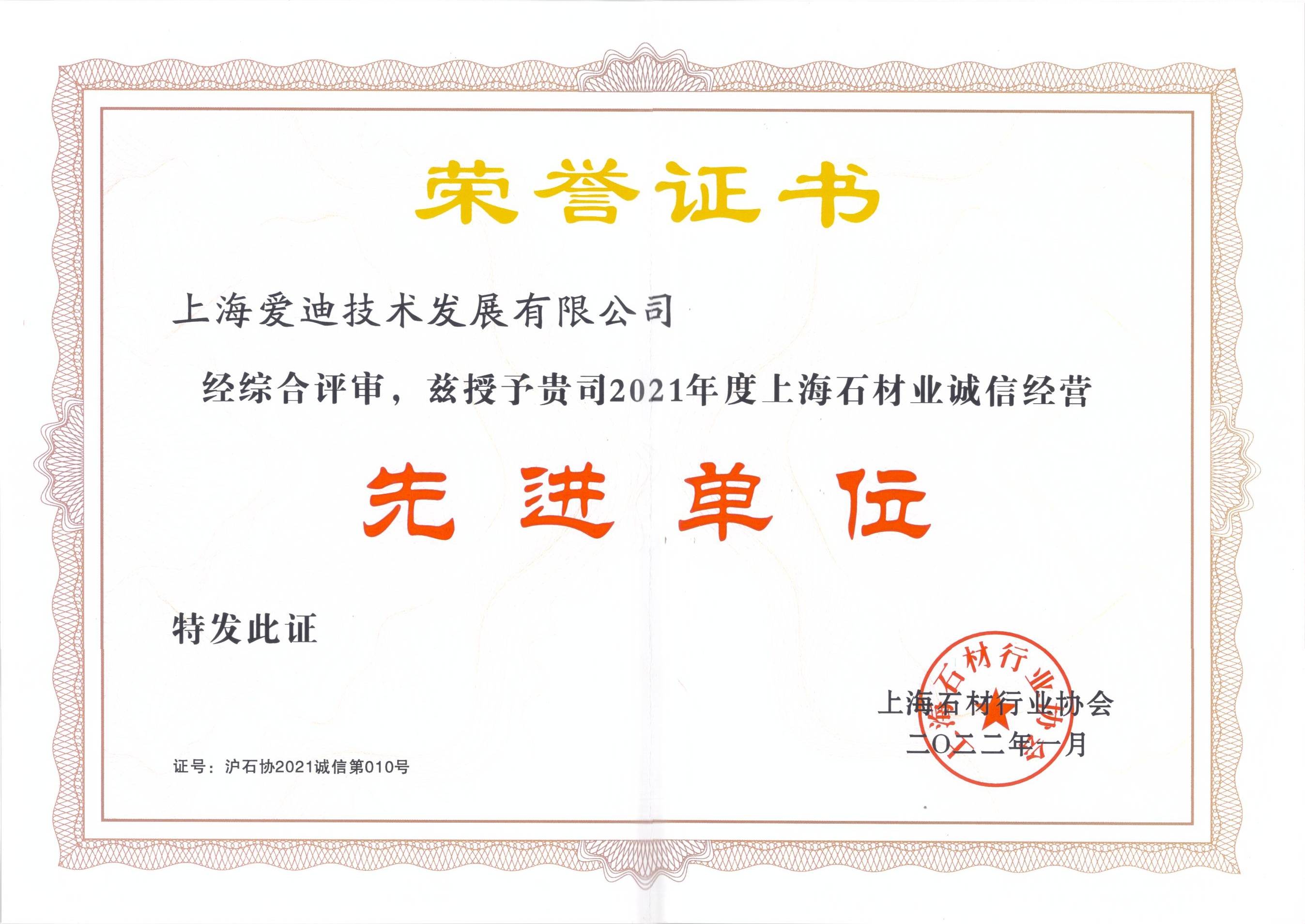 上海石材行業協會-先進單位