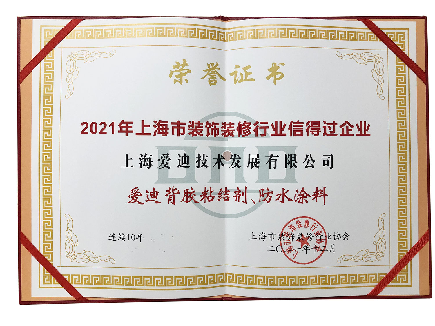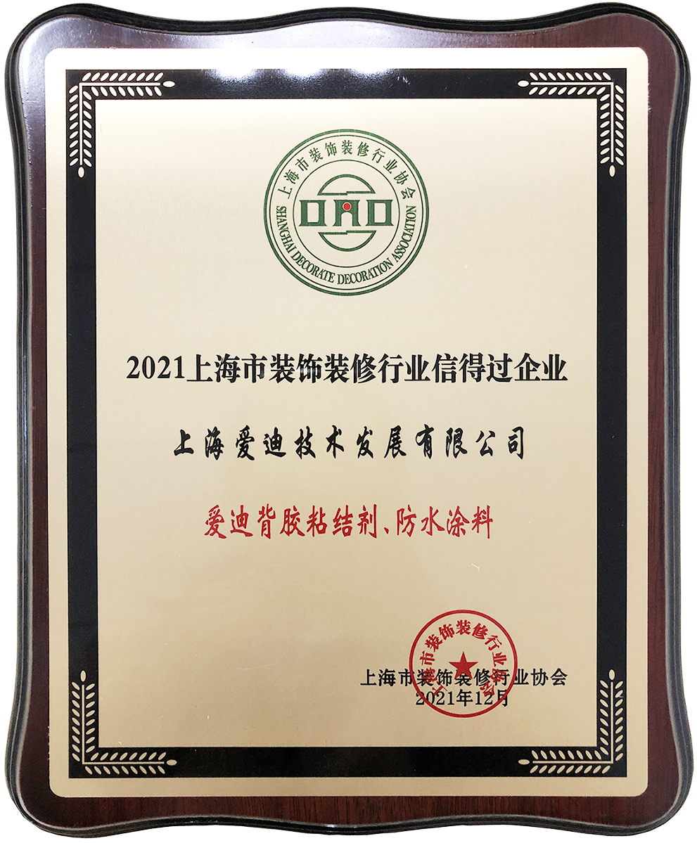 2021年上海市裝飾裝修行業信得過企業 愛迪背膠粘結劑、防水涂料