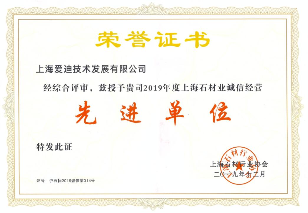 2019年上海石材行業協會先進單位