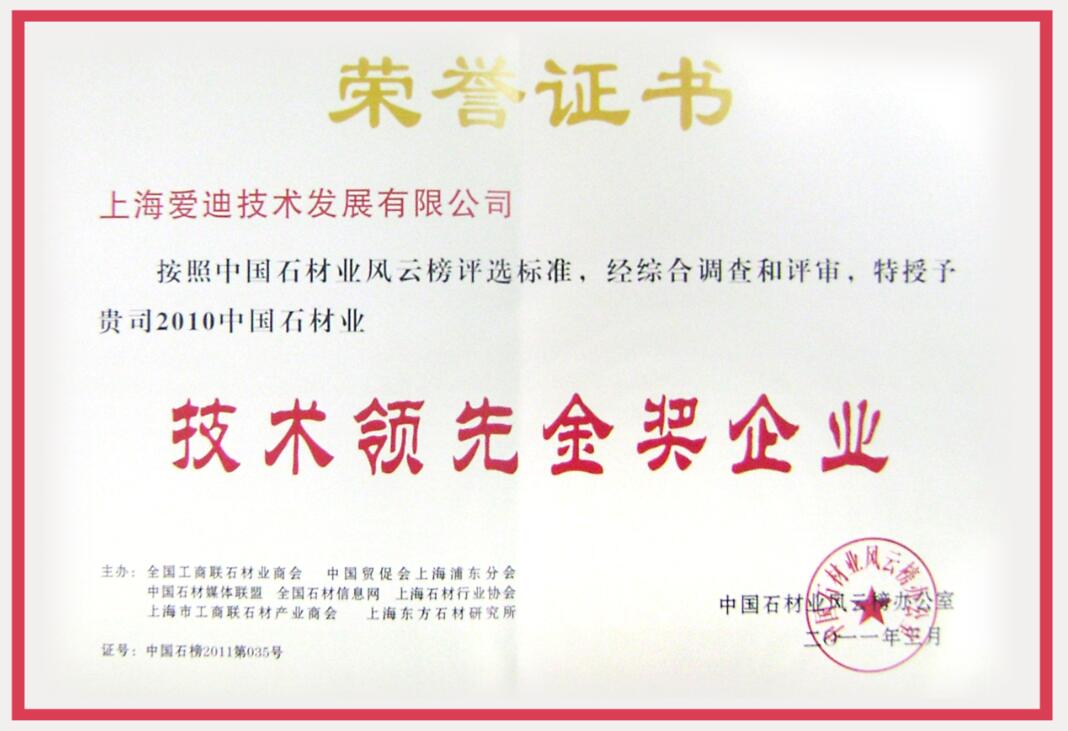 中國石材業(yè)技術(shù)領(lǐng)先金獎企業(yè)(證書)